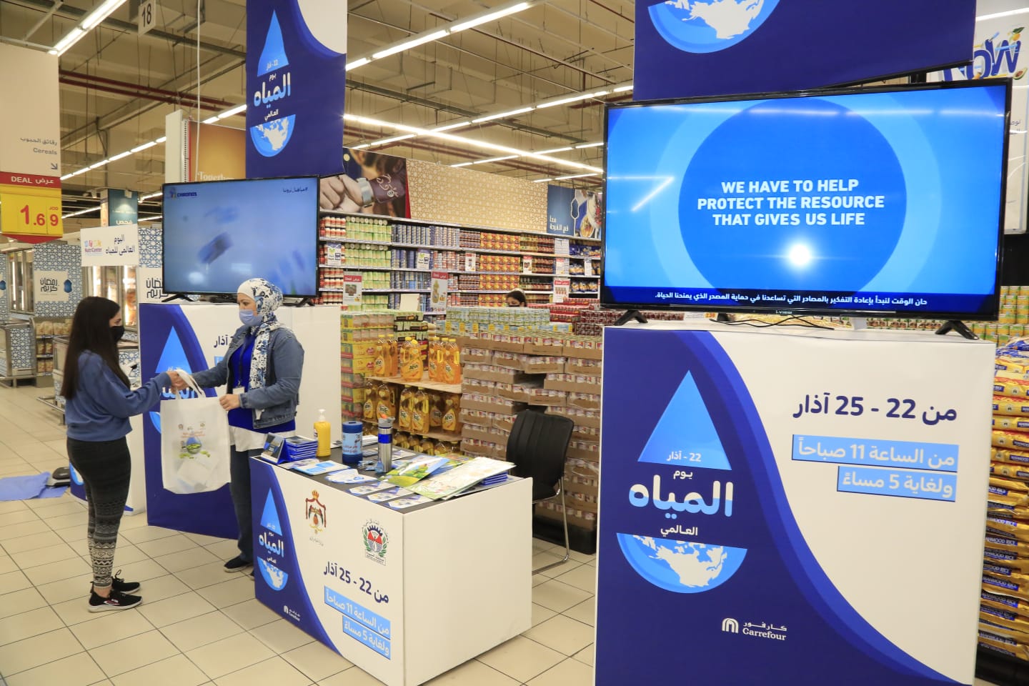 "المياه" تقيم معرضاً لترشيد الاستهلاك المائي احتفاءاً بيوم المياه العالمي بالتعاون مع كارفور الأردن