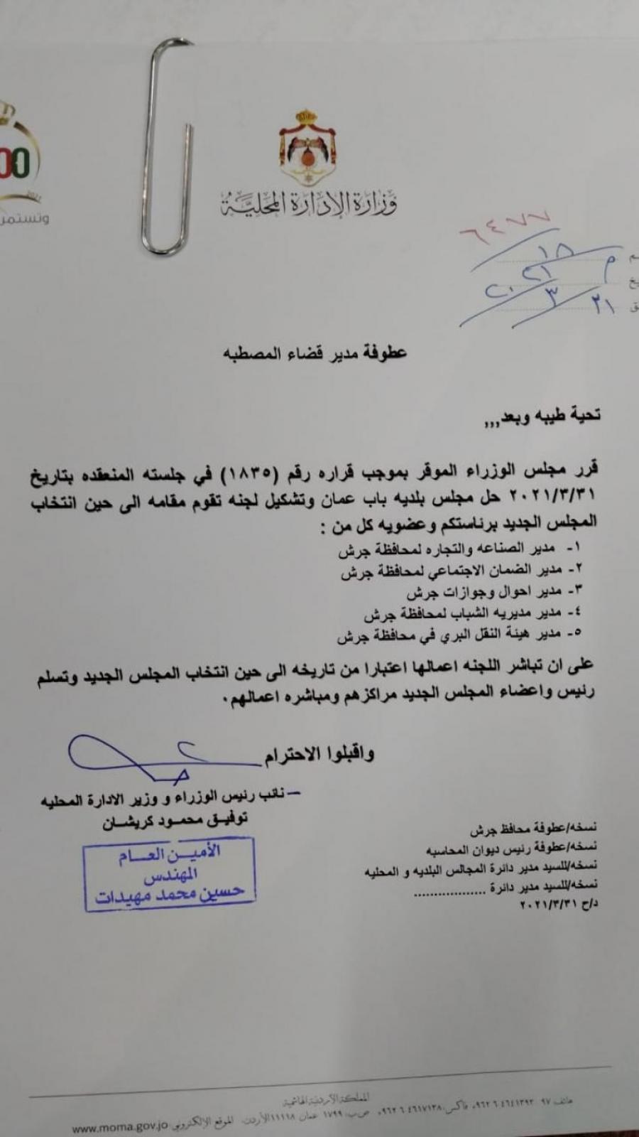 قررت وزارة الادارة المحلية الأربعاء، تكليف لجان مؤقتة لادارة بلديات