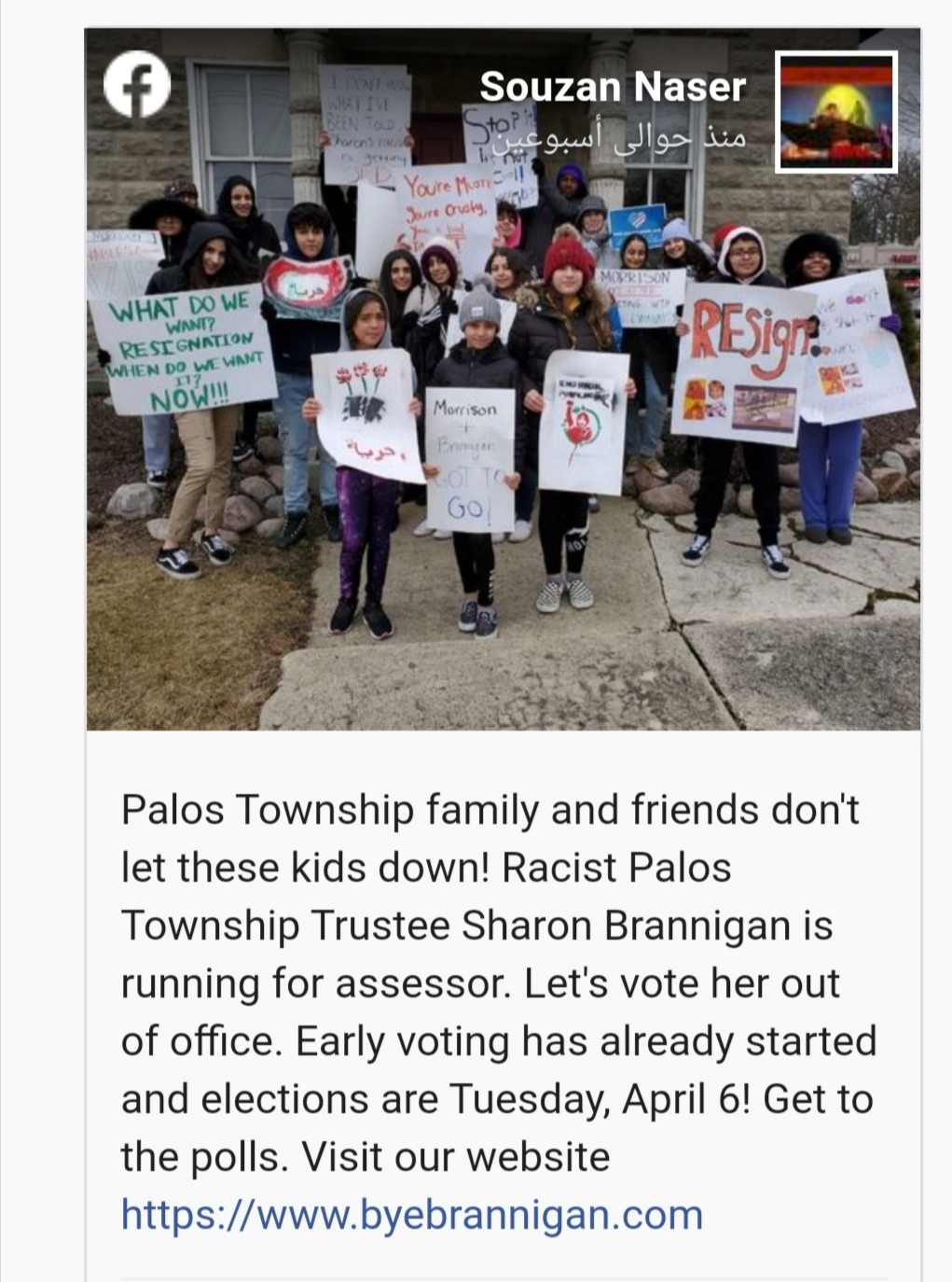 وروج فلسطينيو شيكاغو للحملة التي تدعو إلى عدم إيصال برانيغان إلى المجلس مجددا، بسبب منشوراتها العنصرية ضد العرب والفلسطينيين تحديدا.