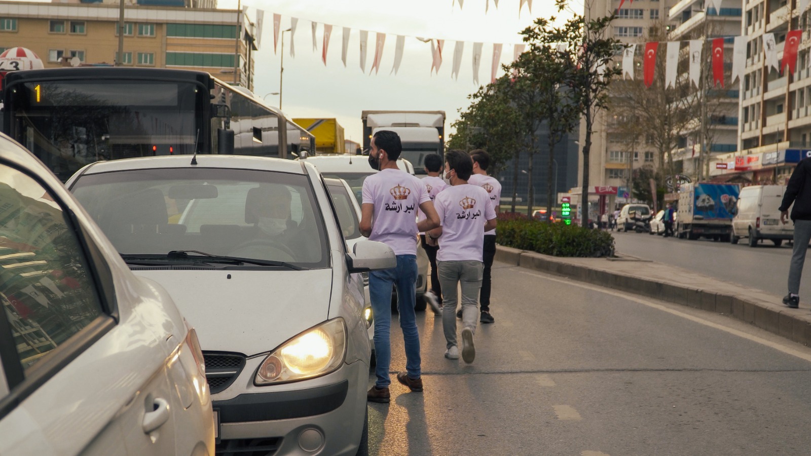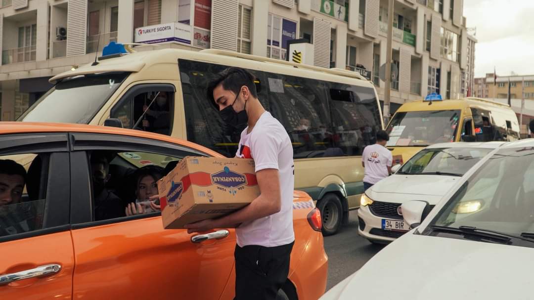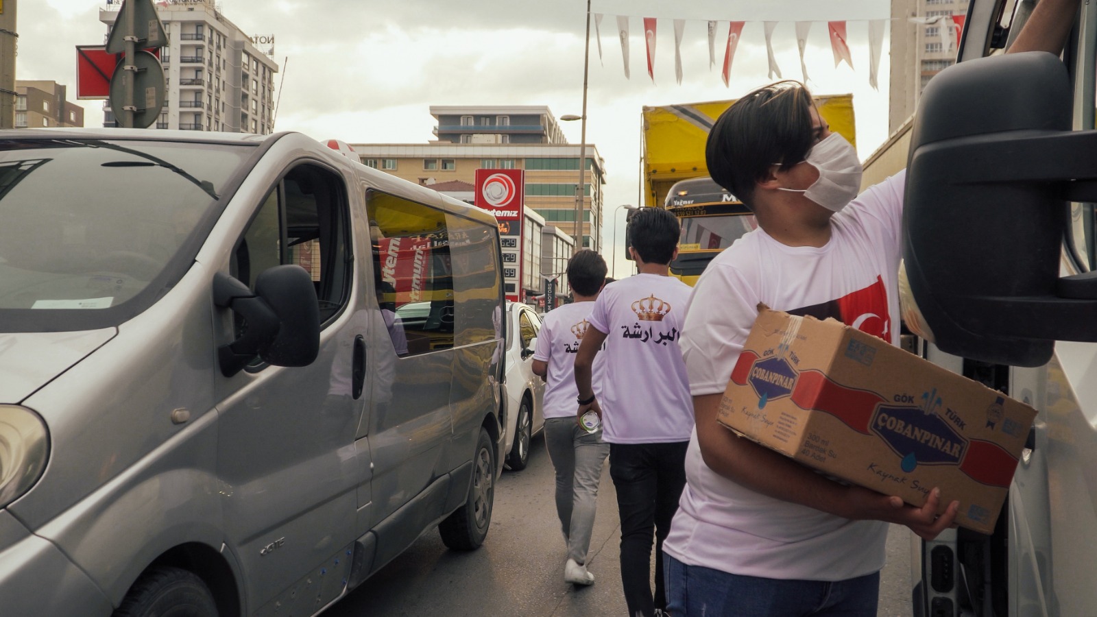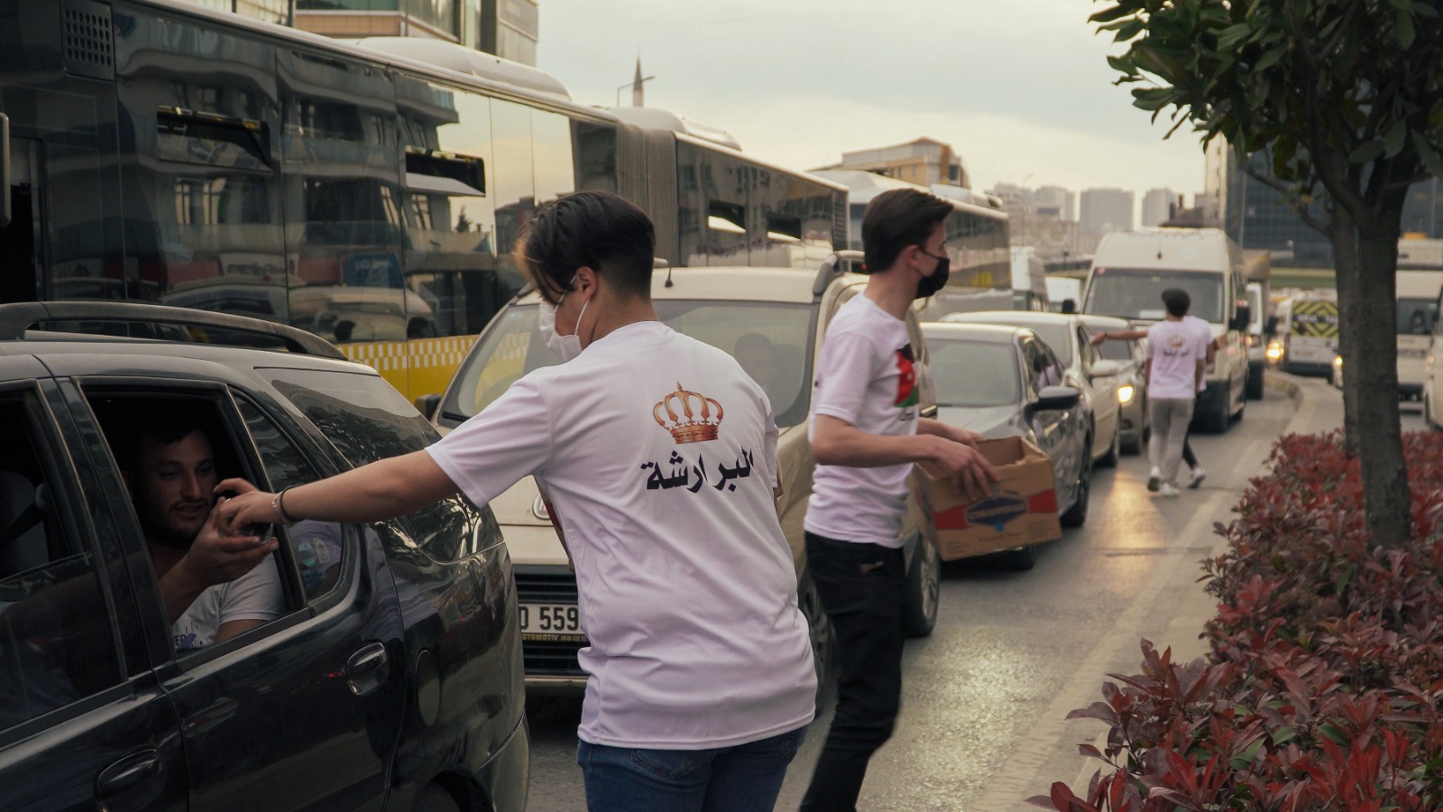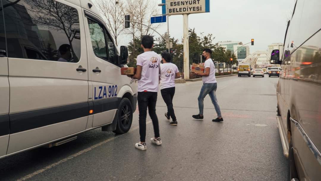 شباب من محافظة الكرك "البرارشة" جنوب الاردن متطوعون، يتناثرون على الطرقات في شوارع اسطنبول وتحديدا عند الاشارات الضوئية، يؤجلون إفطارهم إلى ما بعد اتمام الواجب الذي أخذوا على عاتقهم القيام به ، وهو توزيع ماء وتمر في أكياس مغلفة على المارة في الشارع والسيارات.