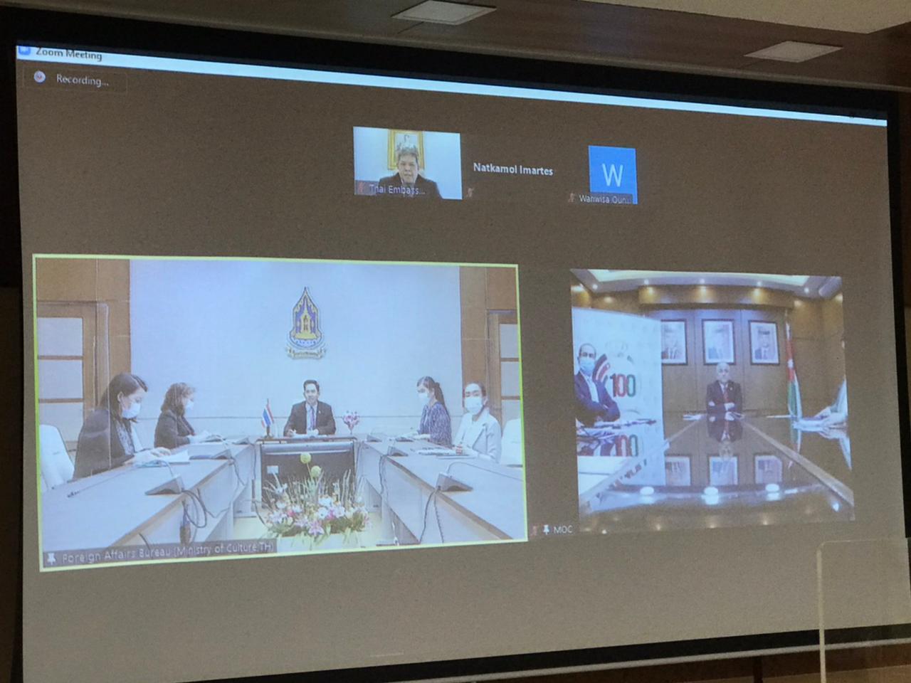بحث وزير الثقافة علي العايد، اليوم الخميس، عبر تقنية الاتصال المرئي مع نظيره التايلندي إيثيبول كونبلوم سبل التعاون الثقافي بين الأردن وتايلند.