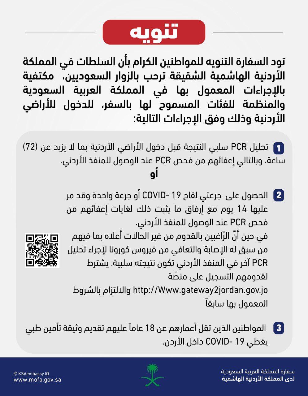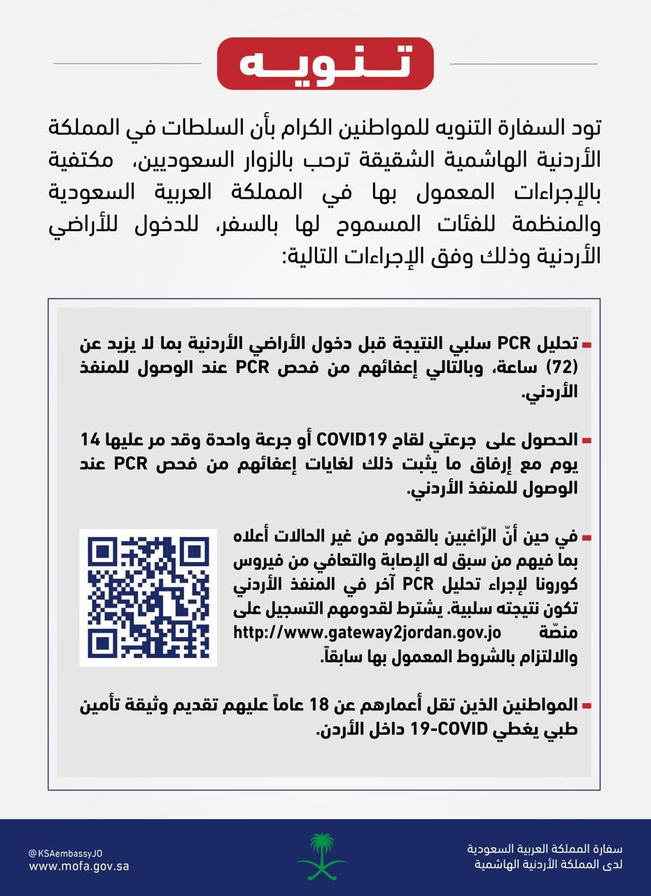 عاجل:تنويه مهم من السفارة السعودية بالأردن لمواطنيها