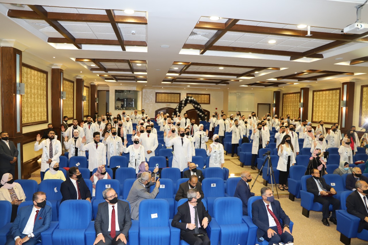 وقال الدكتور الزعبي لقد انتهت المرحلة الدراسية لكم بكل ما فيها من عسر ويسر، وانتم الذين اخترتم هذا المسار المهني في الجامعة حيث اشتملت مسيرتكم على صقل الشخصية وتطوير المهارة التي لم يبخل عليكم فيها استاذتكم الافذاذ مزودين إياكم بالعلم والمعرفة وناقلين لكم خبراتهم التي اكتسبوها من كافة المؤسسات الطبية المحلية والعالمية، موجها الشكر إلى الخدمات الطبية الملكية ووزارة الصحة على كافة التسهيلات التي قدموها للطلبة.