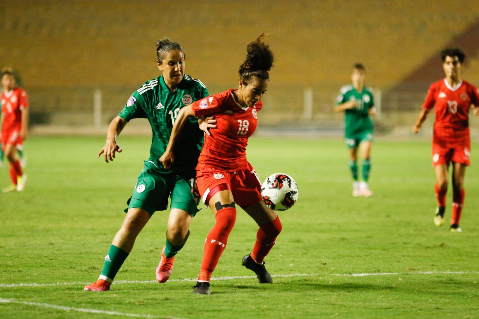 وسجلت للمنتخب التونسي كل من غادة عيادي وصابرين اللوزي، بينما جاءت ثنائية منتخب الجزائر عن طريق إيمان مروش ونعيمه بوهني.