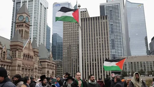 للمرة الأولى... العلم الفلسطيني يرفرف على مبنى بلدية تورونتو الكندية