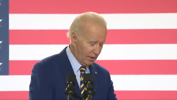 فيديو غريب لبايدن.. ركل المنصة مراراً خلال خطابه