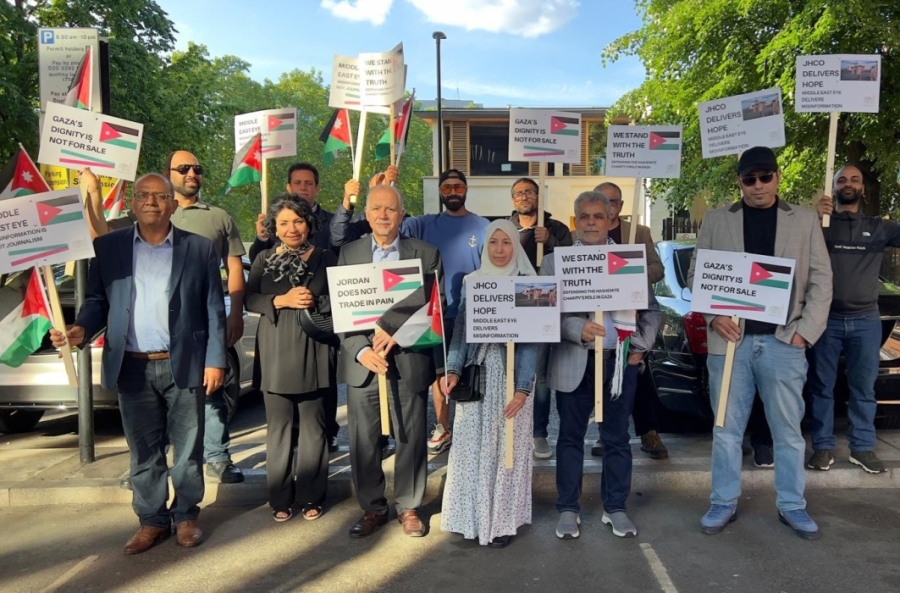 لندن: وقفة احتجاجية أمام "ميدل إيست آي" رفضاً للتقارير الكاذبة بحق الهيئة الخيرية الهاشمية