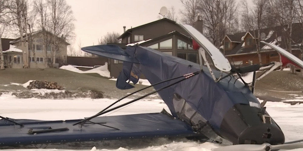 تدحرجت على مياه متجمدة.. انزلاق طائرة نحو منزل بسبب الرياح القوية