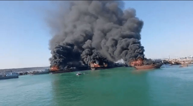 حريق يلتهم 7 سفن بميناء عسلوية الإيراني