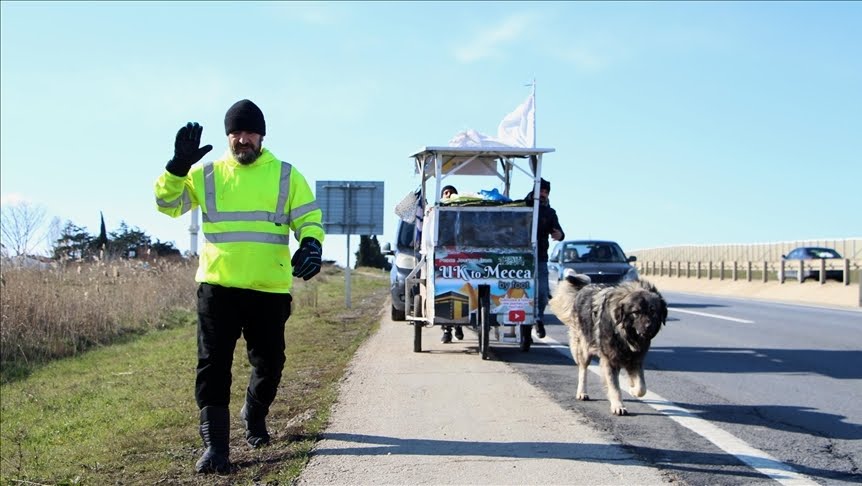 شاهد.. عراقي يصل إلى إسطنبول من بريطانيا سيراً على الأقدام بطريقه إلى الحج