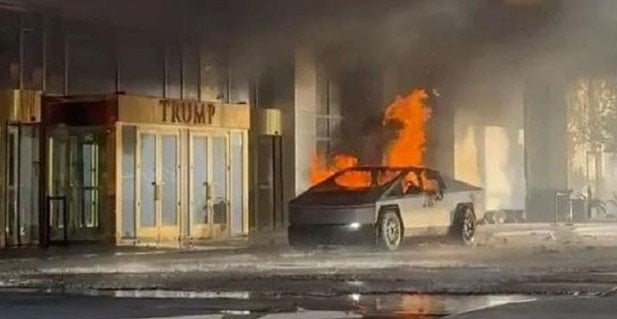 شاهد بالفيديو.. قتيل بانفجار سيارة "تسلا" أمام فندق لترامب في لاس فيغاس