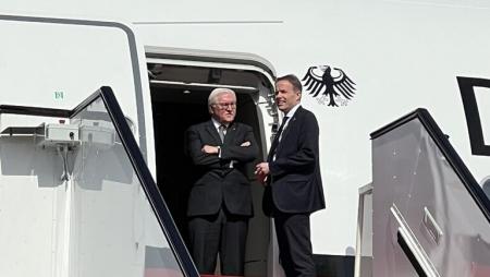 بعد وصوله الدوحة .. الرئيس الألماني انتظر نصف ساعة على سلم الطائرة