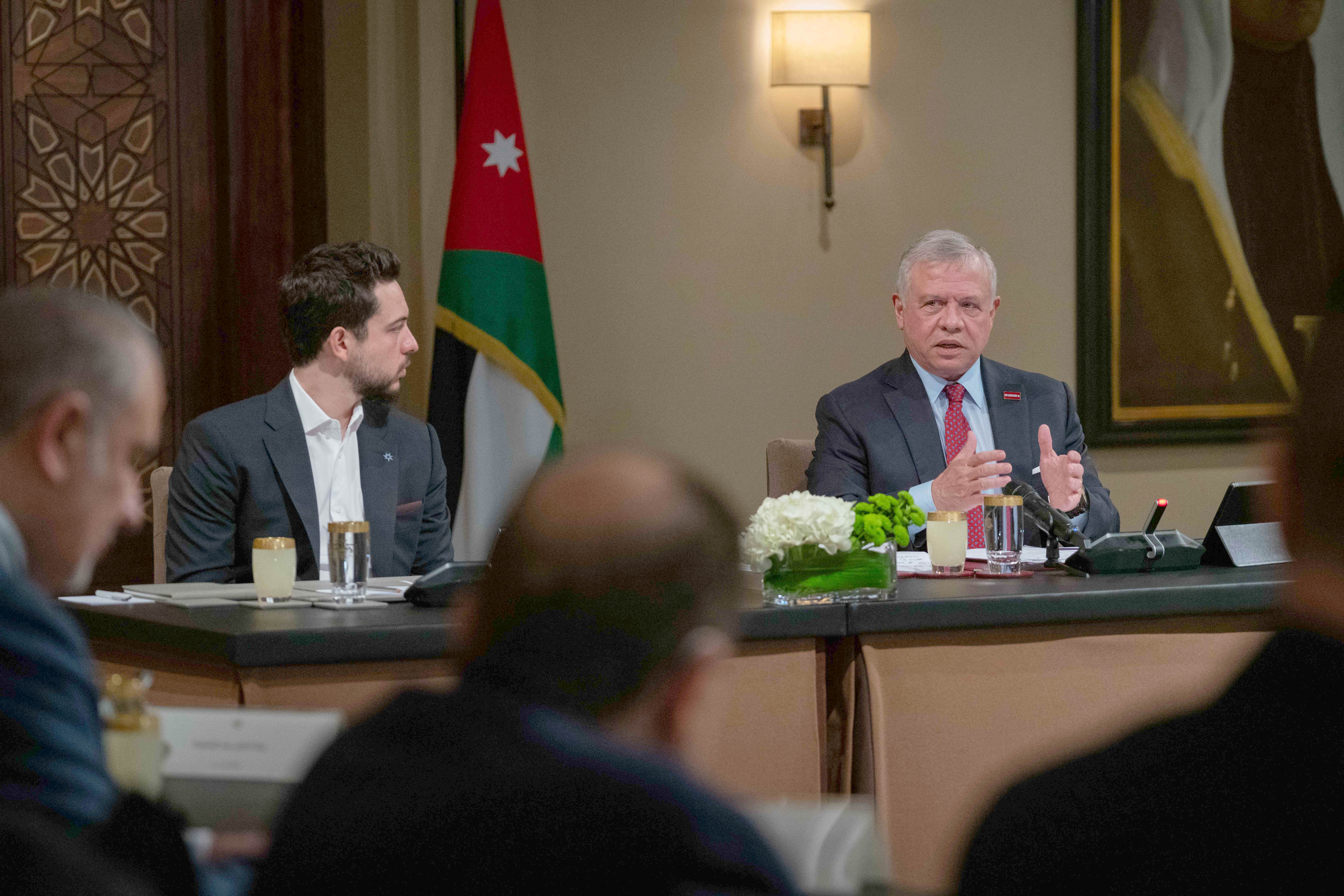 جلالة الملك عبدالله الثاني يلتقي ممثلين عن القطاع الخاص، بحضور سمو الأمير الحسين بن عبدالله الثاني ولي العهد، ويؤكد أن #الأردن بلد قوي ومستقر والأزمات تجعله دائما أقوى