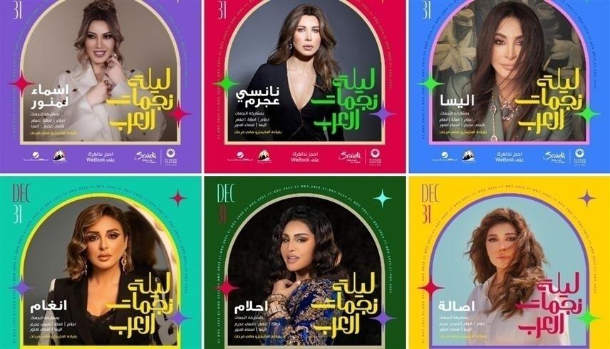6 نجمات عرب في احتفال رأس السنة بالرياض