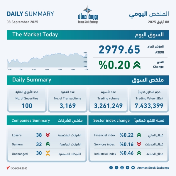 بورصة عمان تغلق تداولاتها على ارتفاع