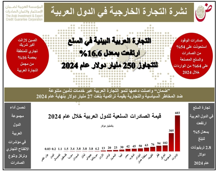 ضمان الاستثمار": 3.6 تريليون دولار قيمة التجارة العربية البينية العام الماضي