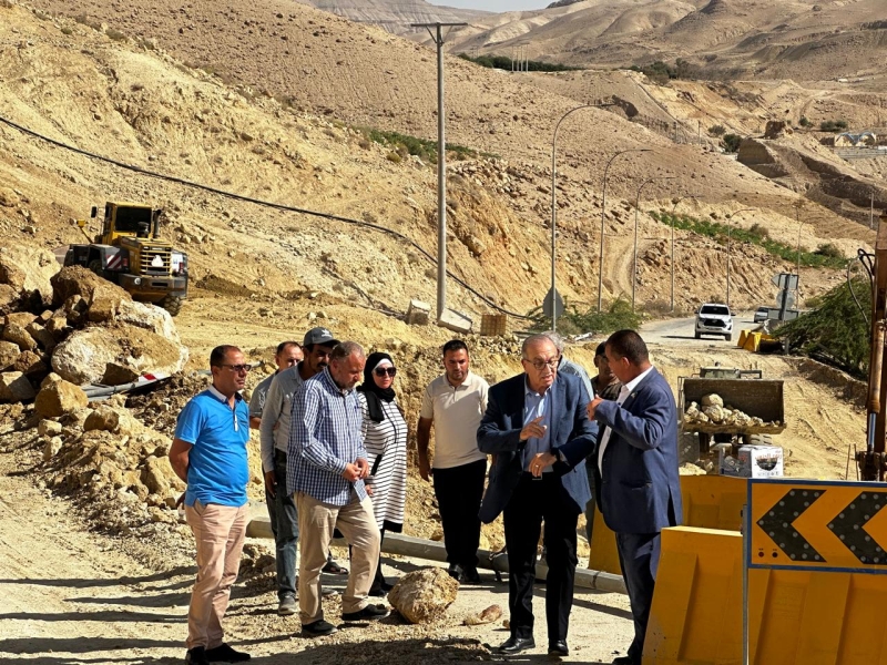 وزير الأشغال يتفقد مشروع معالجة الانزلاق على طريق الموجب