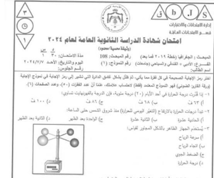 التربية تنشر أسئلة امتحان التوجيهي لمبحثي الجغرافيا وعلوم الأرض