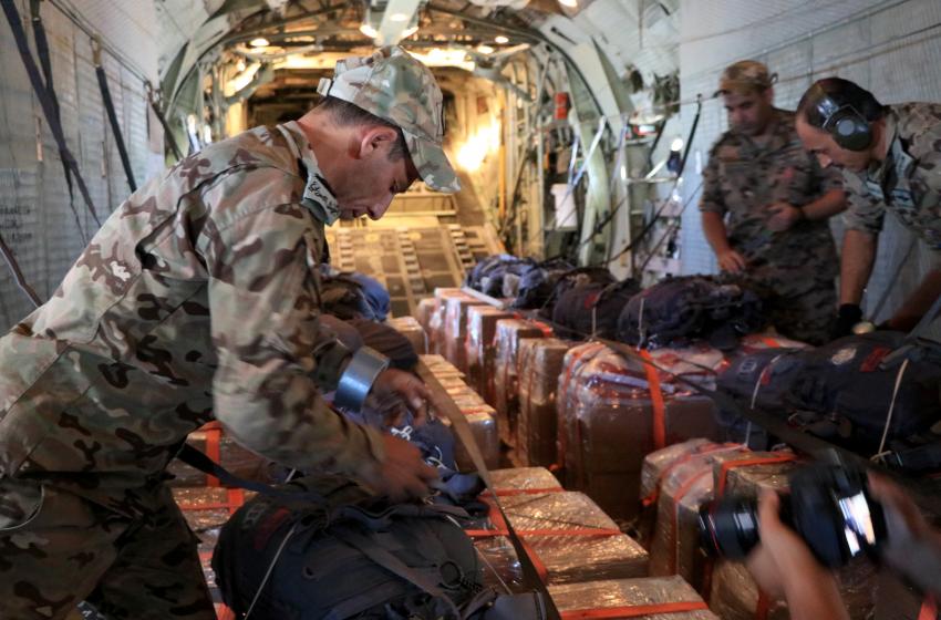 القوات المسلحة تنفذ إنزالين لمساعدات جنوب غزة بمشاركة دولية