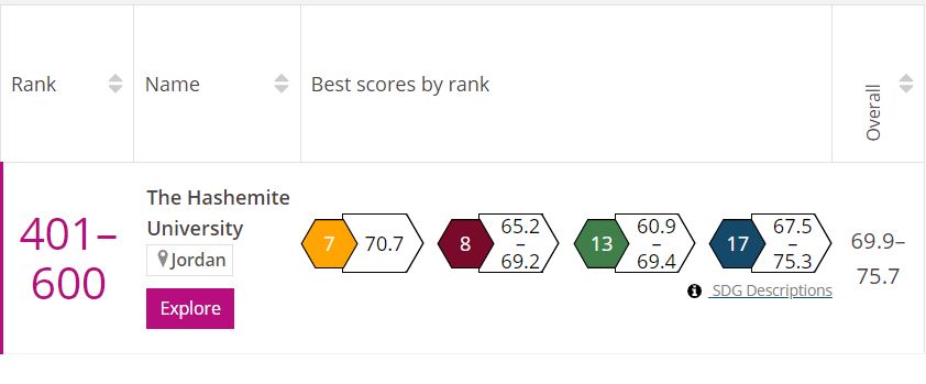 الجامعة الهاشمية تحقق تقدماً ملحوظاً في تصنيف التايمز لأهداف التنمية المستدامة 2024
