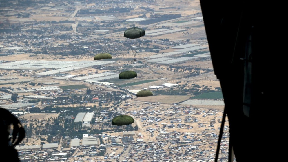 الجيش ينفذ إنزالين جويين لمساعدات على جنوب غزة بمشاركة دولية