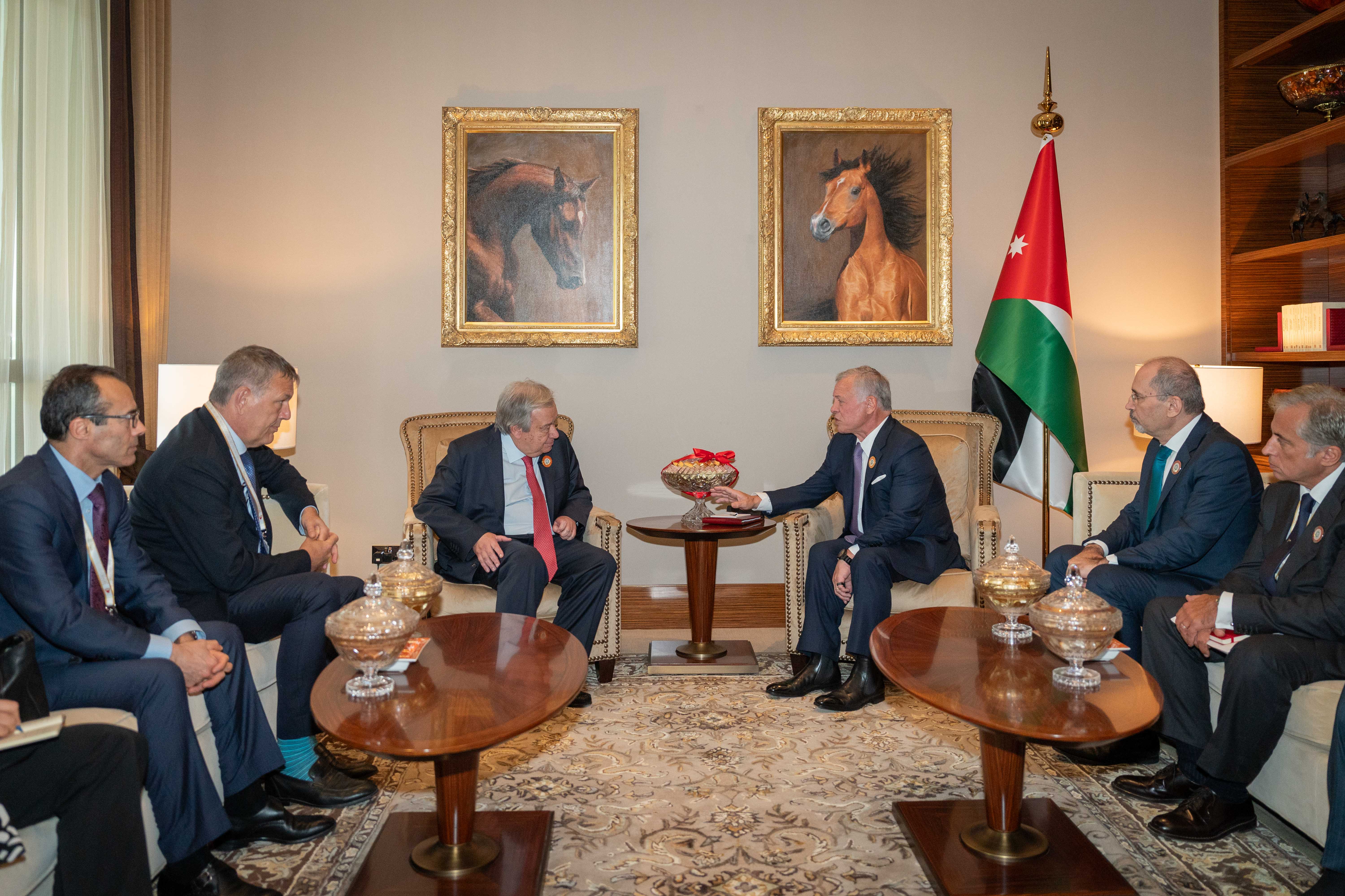 الملك يلتقي غوتيريس ويحذر من الوضع الإنساني الكارثي الذي يعيشه الغزيون