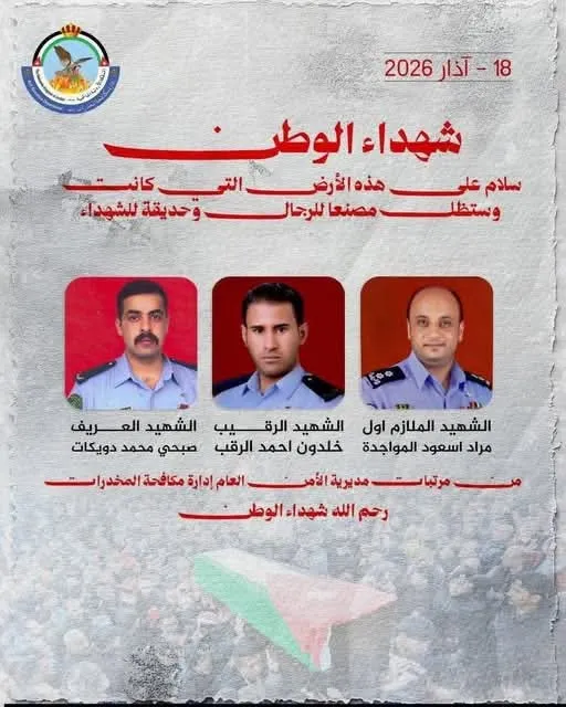 رئيس هيئة الأركان المشتركة ينعى شهداء الواجب في مديرية الأمن العام