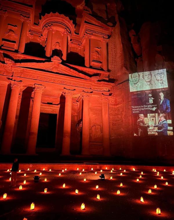 سلطة البترا تنير واجهة الخزنة تكريمًا لعمر ياغي بعد فوزه بجائزة نوبل للكيمياء 2025