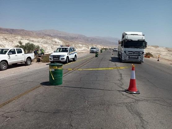سقوط حجر 2طن من (تريلا) على طريق المفرق الزرقاء