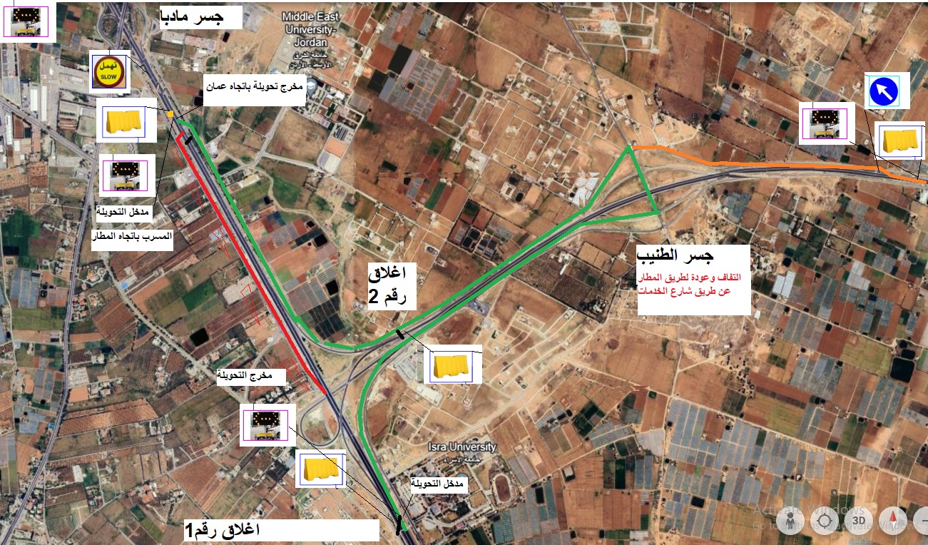 تحويلات مؤقتة لتركيب جسر مشاة على طريق المطار فجر السبت