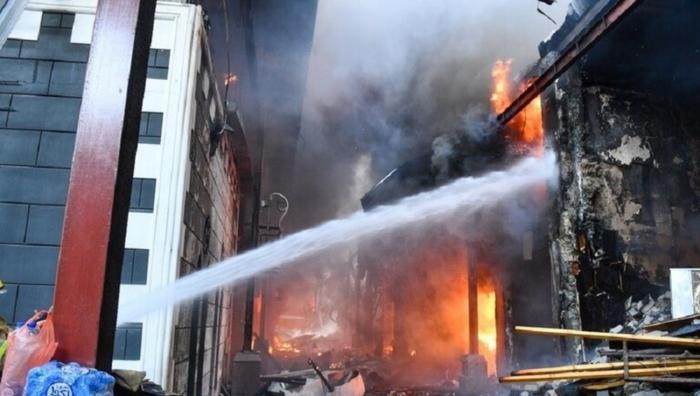 حريق بمحل دهانات يؤدي الى تباطؤ حركة السير بشكل كبير في منطقة راس العين