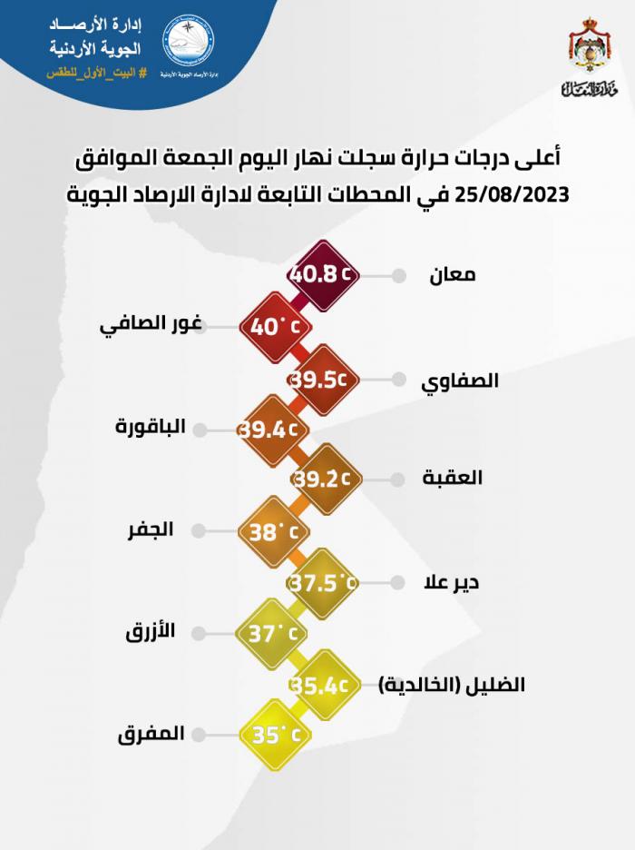 معان تسجل أعلى درجات حرارة نهار الجمعة في الأردن