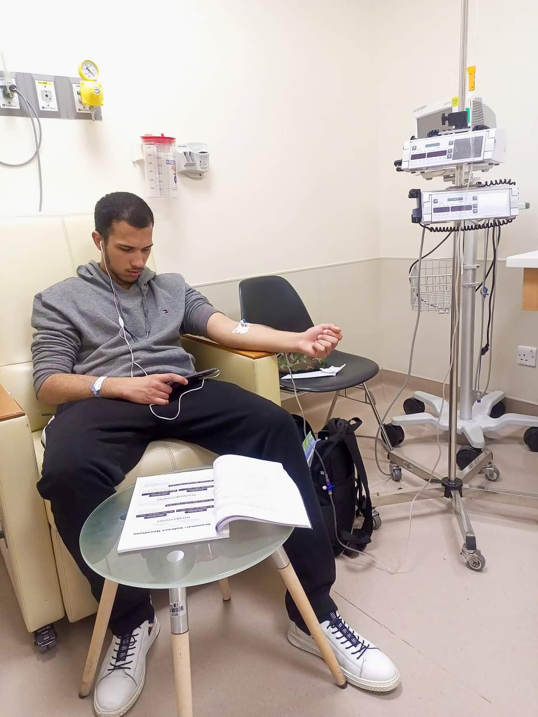 شكرا مركز الحسين للسرطان "إبرة الكيماوي بإيد والكتاب بالإيد الثانية"