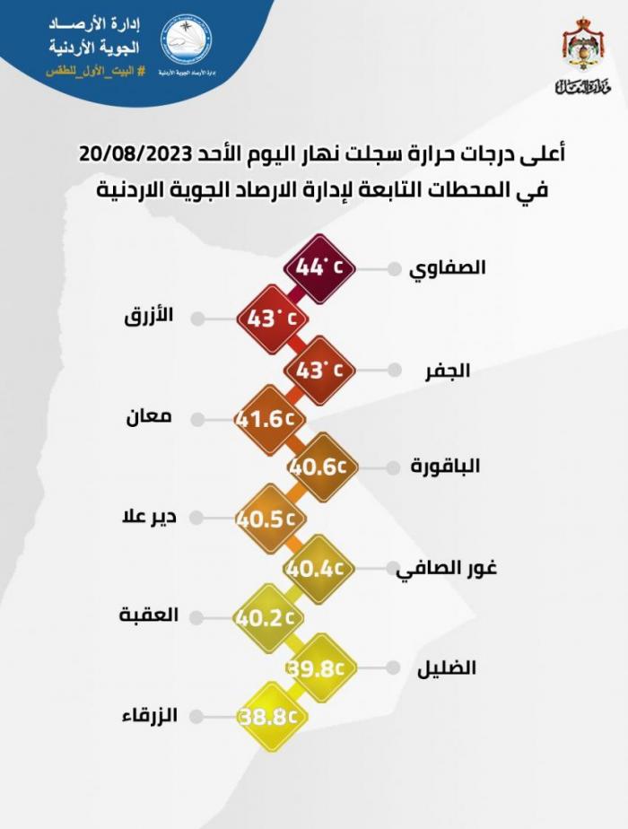 الصفاوي تسجل أعلى درجة حرارة في الأردن الأحد