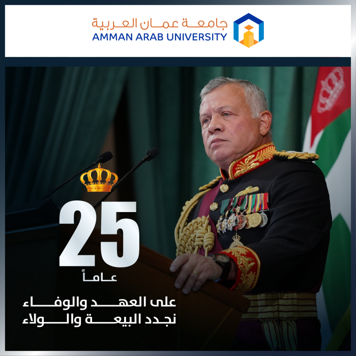"عمان العربية" تحتفل باليوبيل الفضي لتولّي جلالة الملك عبد الله الثاني ابن الحسين المعظم سلطاته الدستورية