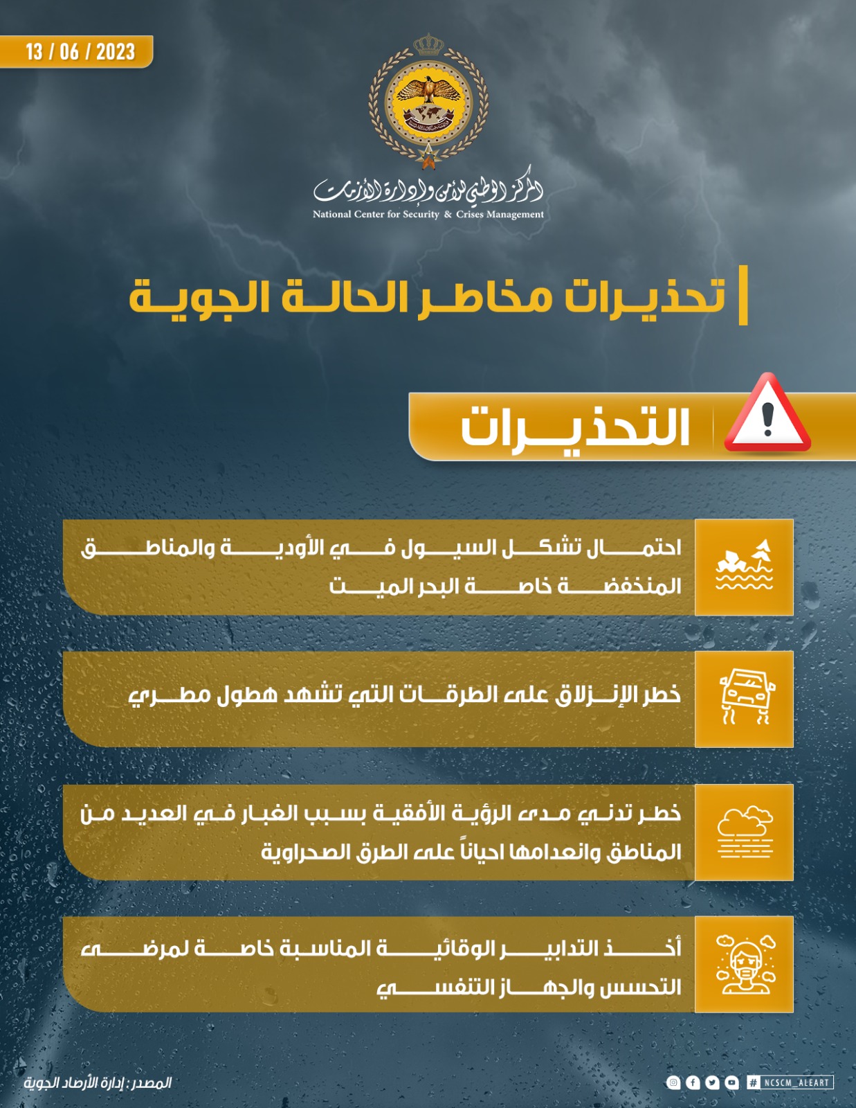 إعلان حالة الطوارئ المتوسطة في الكرك ومادبا والبلقاء بسب الظروف الجوية