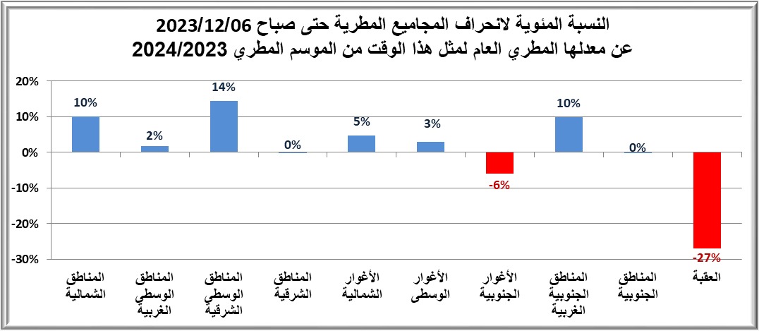 حالة عدم الاستقرار الجوي ترفع الموسم المطري 2023/2024 بنسب تراوحت ما بين (01%- 19%)