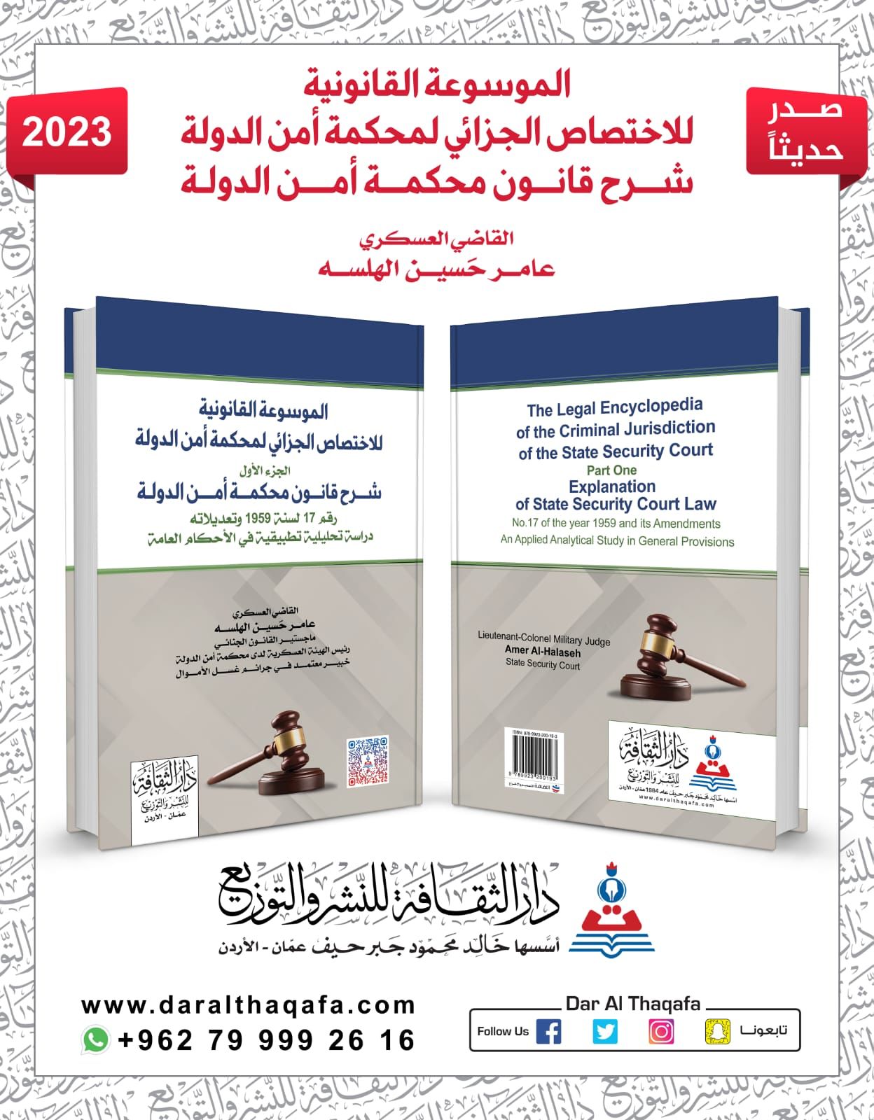 صدور الكتاب الأول من الموسوعة القانونية للاختصاص الجزائي لمحكمة أمن الدولة