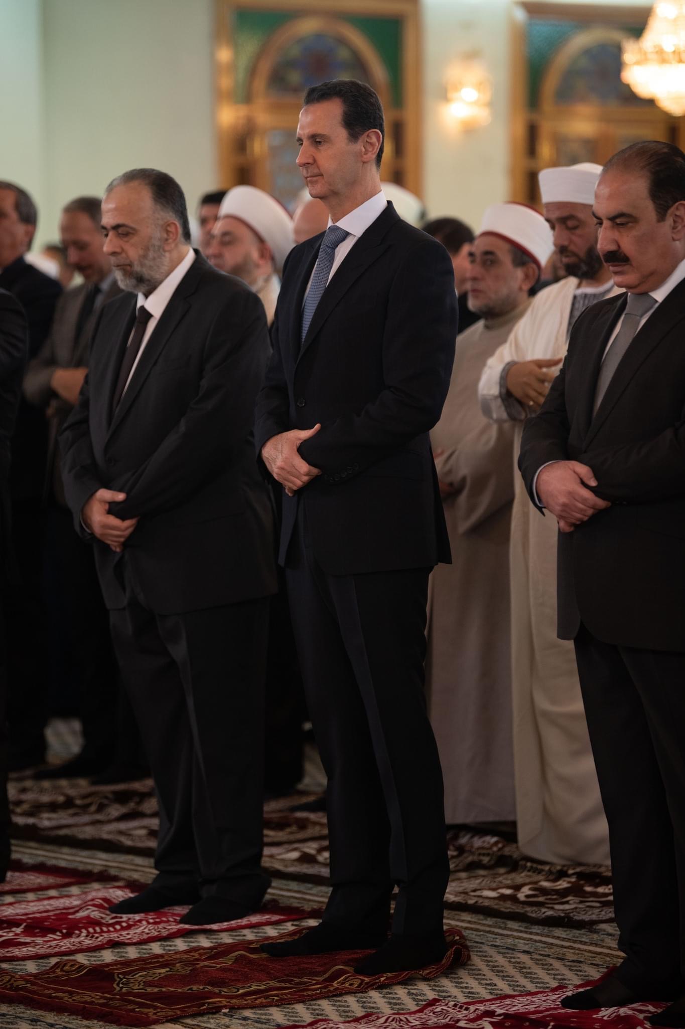 الرئيس السوري بشار الأسد يؤدي صلاة عيد الفطر في رحاب جامع الرئيس الراحل حافظ الأسد بدمشق
