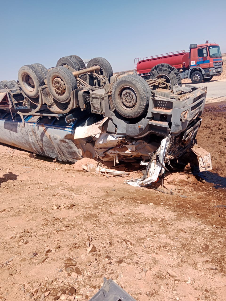 وفاة واصابة إثر تدهور صهريج وقود على طريق الازرق باير
