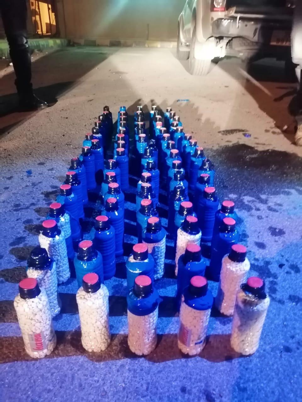أخبار الأردن:ضبط 125 ألف حبة مخدرة حاول شخص من جنسية عربية تهريبها داخل عبوات مياه لاحدى دول الجوار .