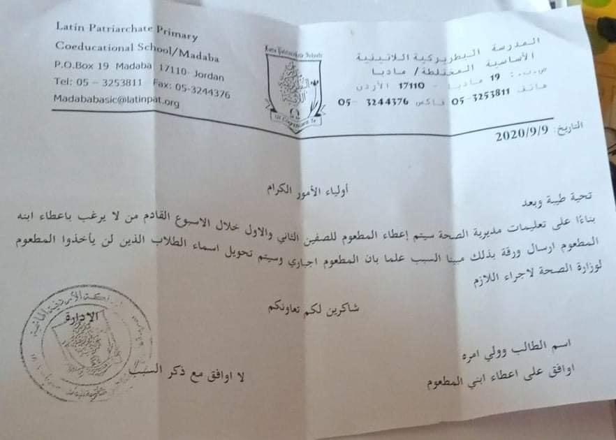 حقيقة المطعوم الذي ستعطيه مدرسة خاصة لطلبتها في مادبا