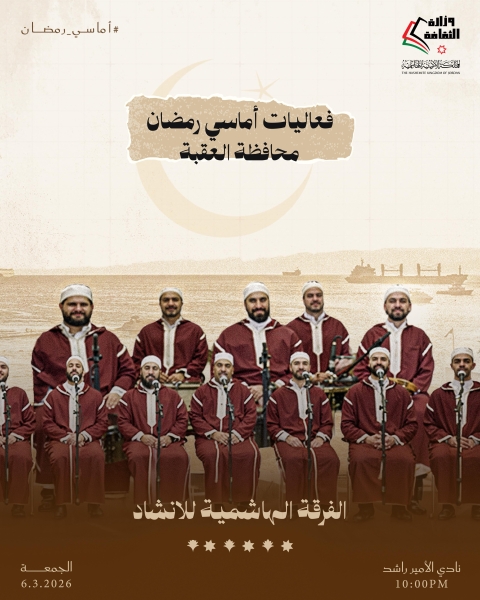 أماسي رمضان" يومي الخميس والجمعة المقبلين، 5 + 6 آذار 2026 وزارة الثقافة تواصل تقديم "أماسي رمضان" في مختلف المحافظات