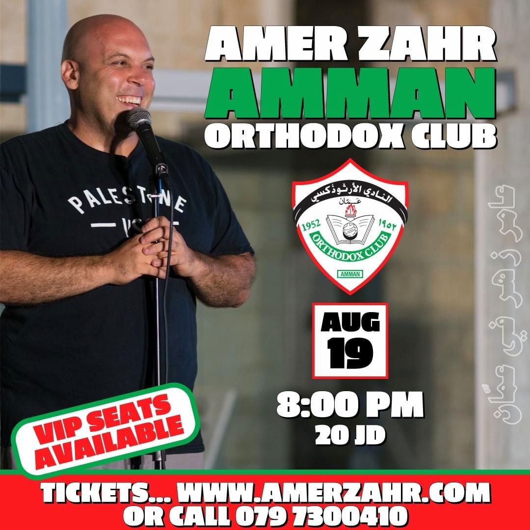 النادي الارثوذكسي يستضيف الفنان الكوميدي عامر زهر