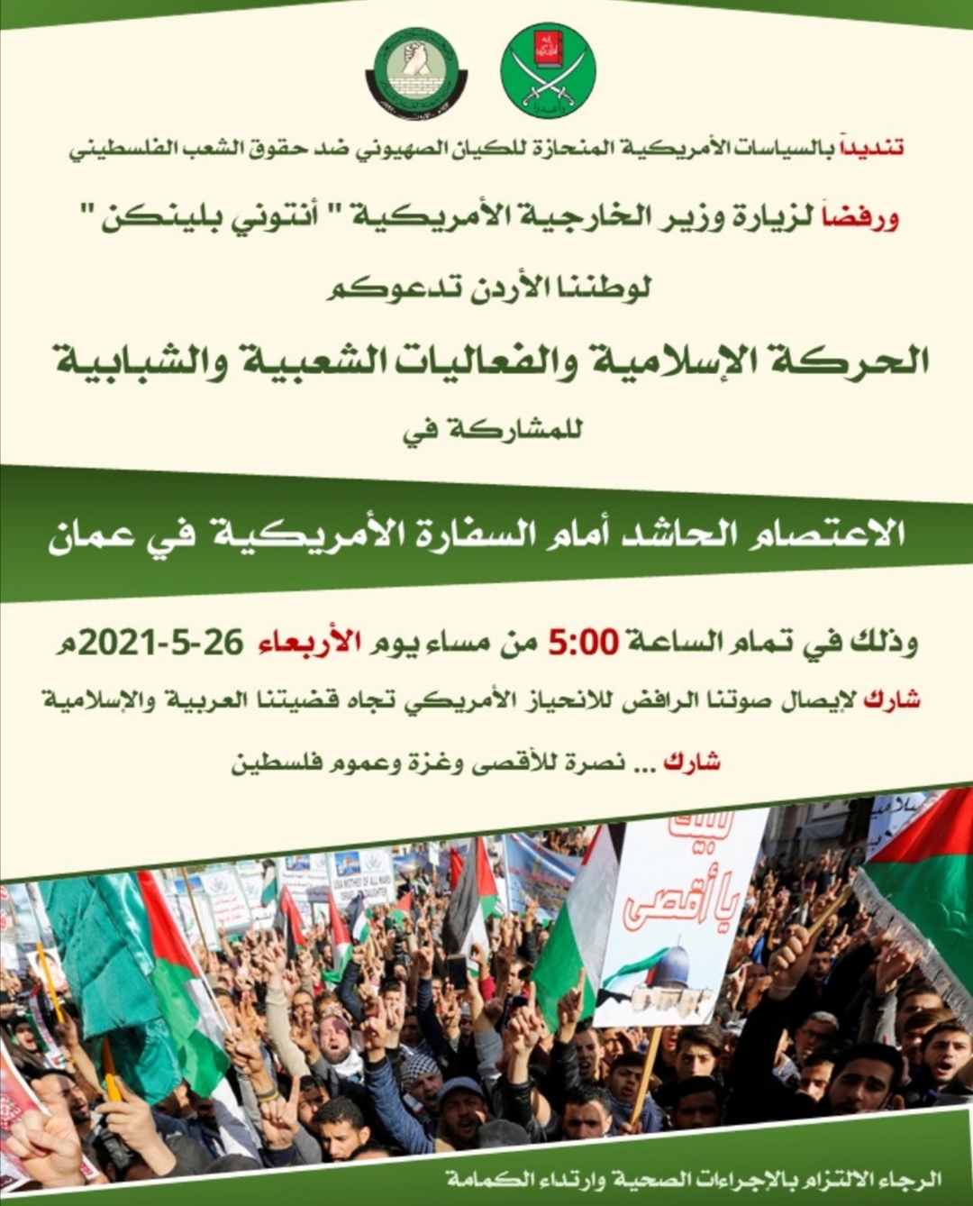 اعتصام امام السفارة الأمريكية الاربعاء رفضا لزيارة بلينكن