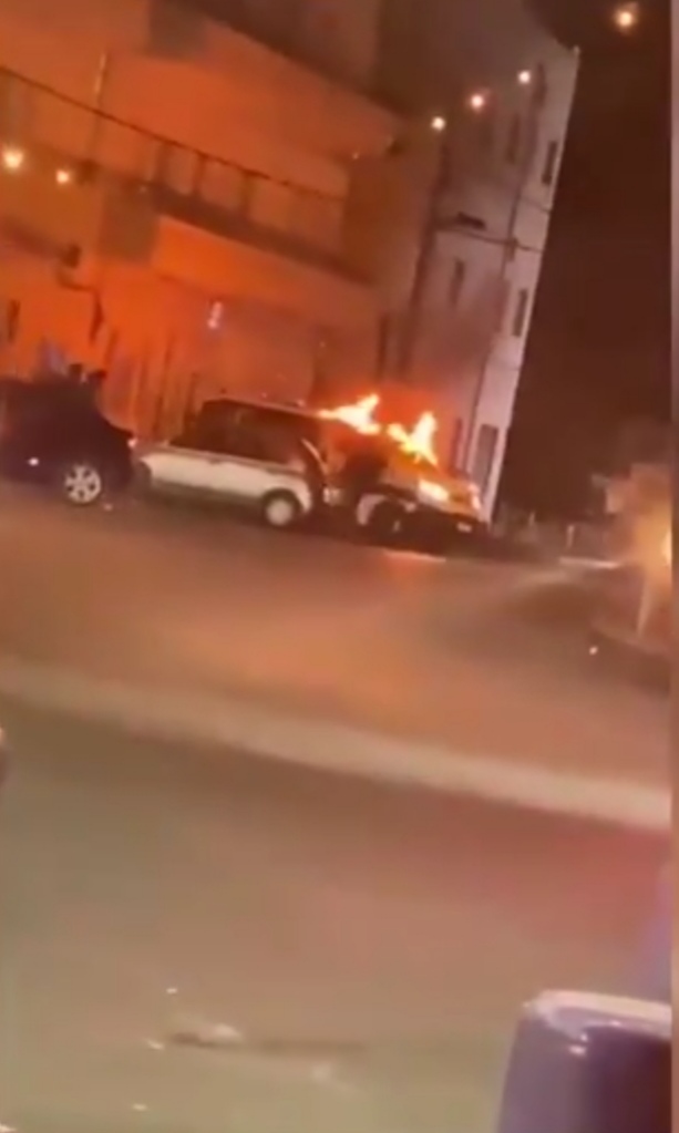 شاهد: شبان فلسطينيون يحرقون سيارة تابعة للشرطة الإسرائيلية خلال مواجهات عنيفة في بلدة الطور - القدس