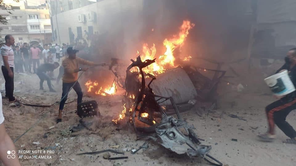 شهيد باستهداف طائرات العدو الصهيوني سيارة مدنية في الشيخ رضوان بغزة... صور