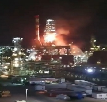 شاهد.. اندلاع حريق كبير في مصفاة نفط بمدينة حيفا