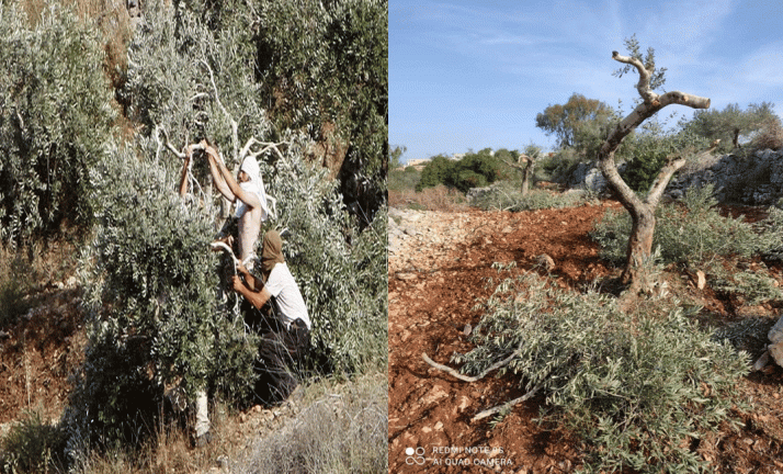 فلسطين : مستوطنون يقطعون أشجار زيتون معمرة في الضفة الغربية(صور)