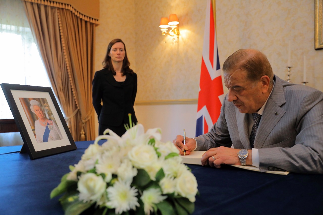 الدغمي يزور السفارة البريطانية معزياً بوفاة الملكة اليزابيث الثانية